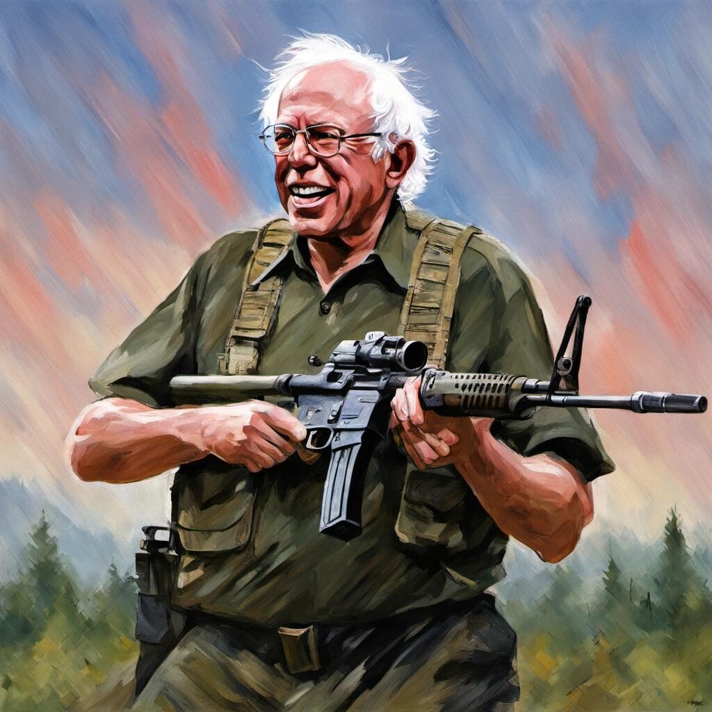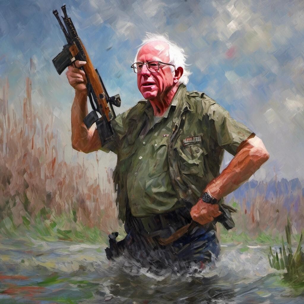 Prompt: Bernie sanders as Rambo in the style of Monet