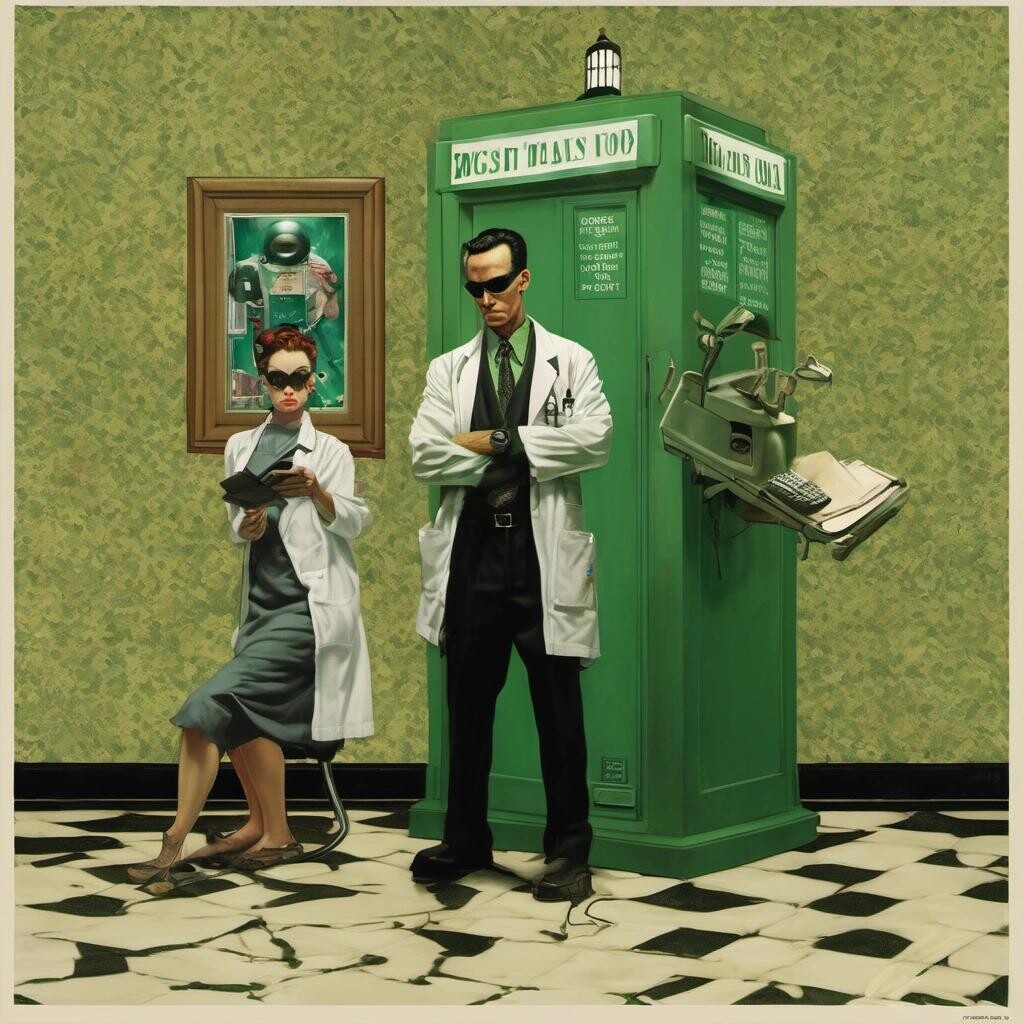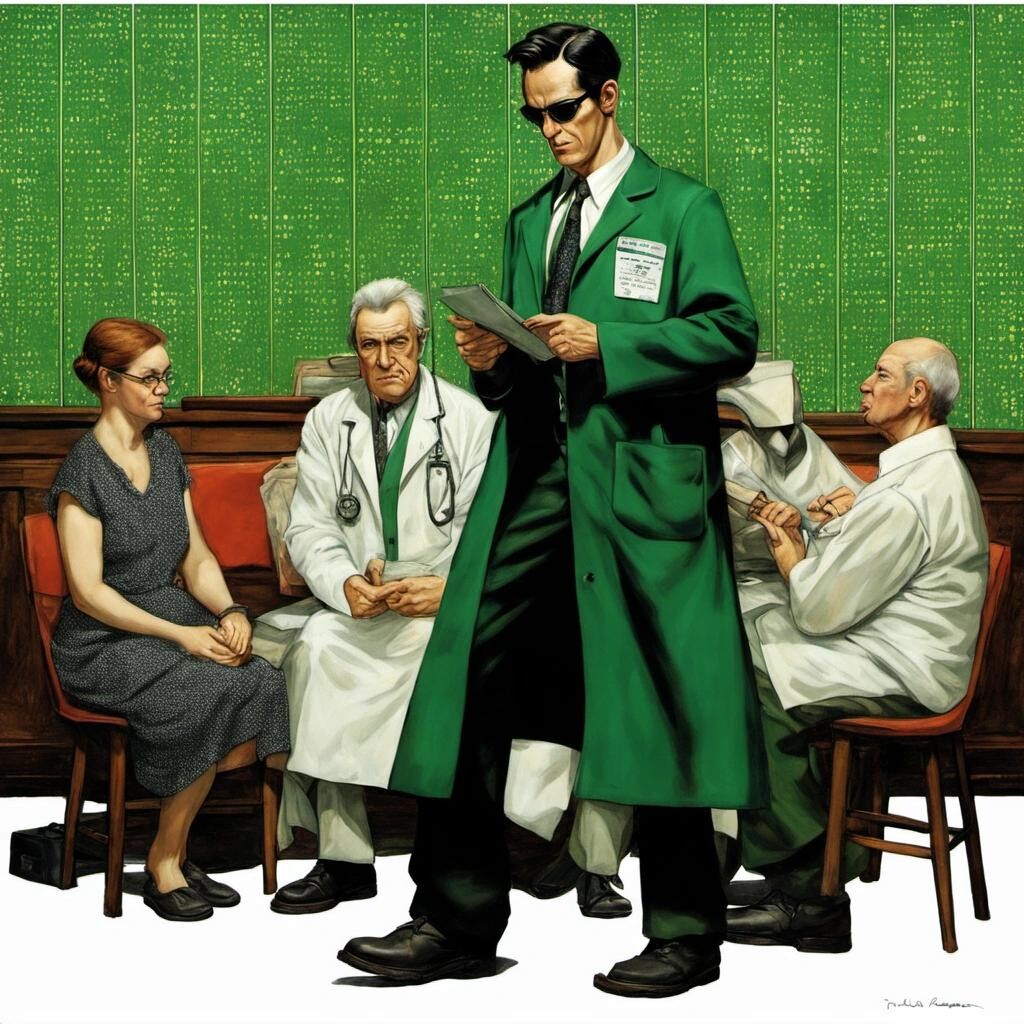 Prompt: a doctor jacked in to the Matrix in the style of Norman Rockwell.
