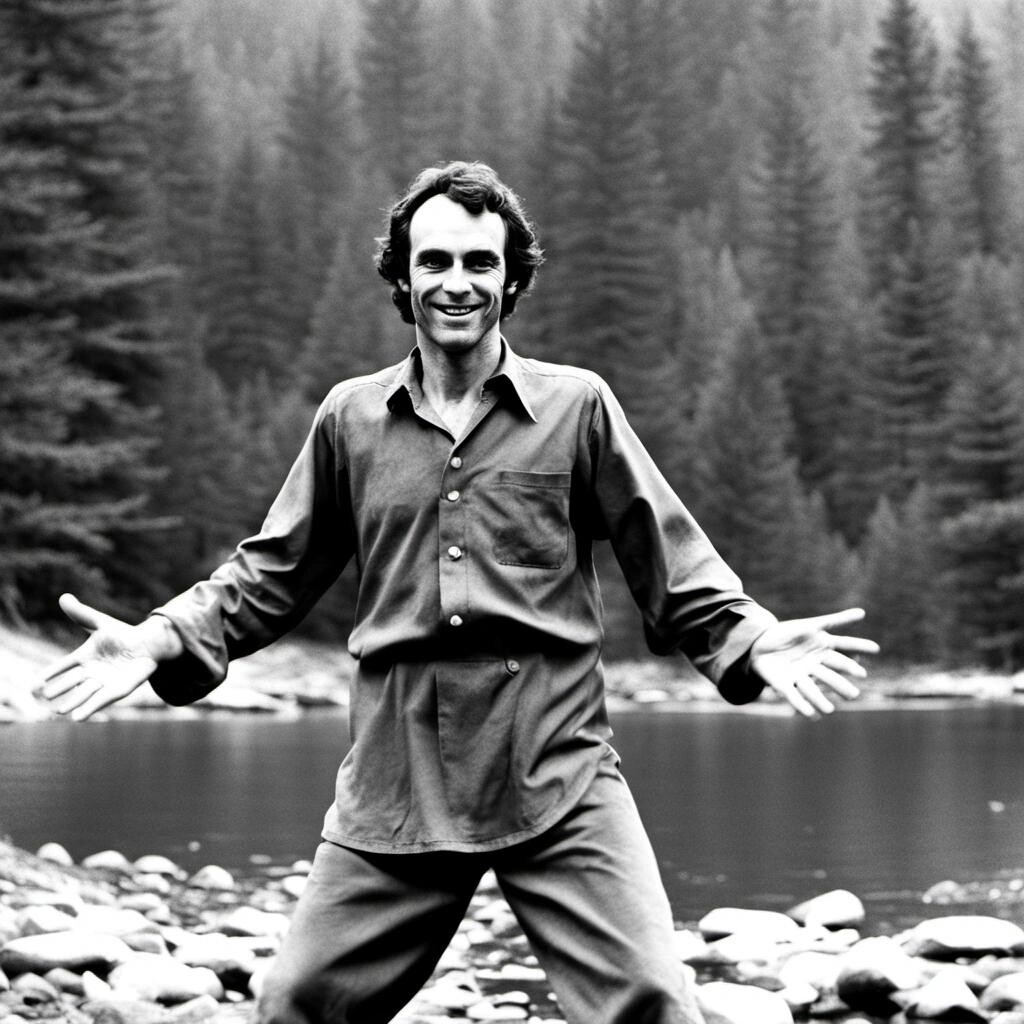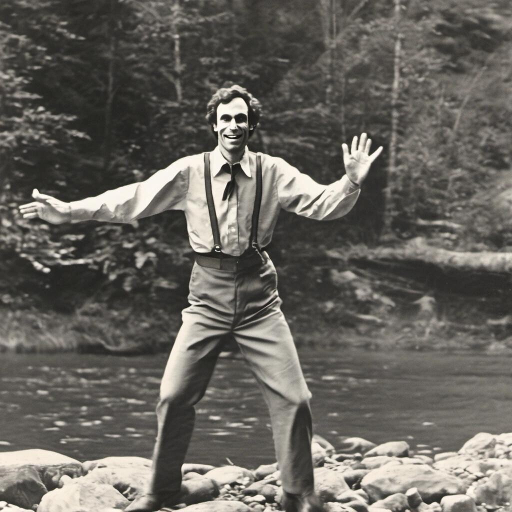 Prompt: Ted Bundy doing the River Dance in traditional garb