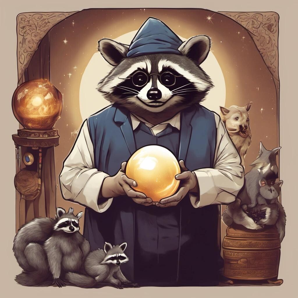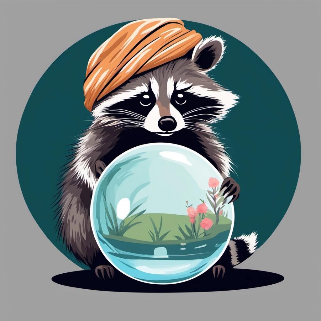 Prompt: a raccoon with a turban looking into a crystal ball in the style of Monet