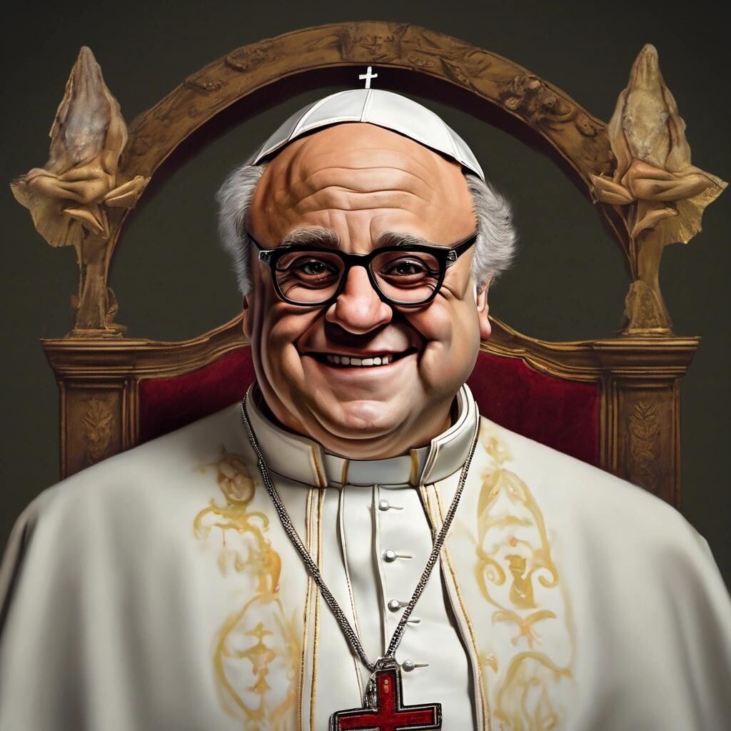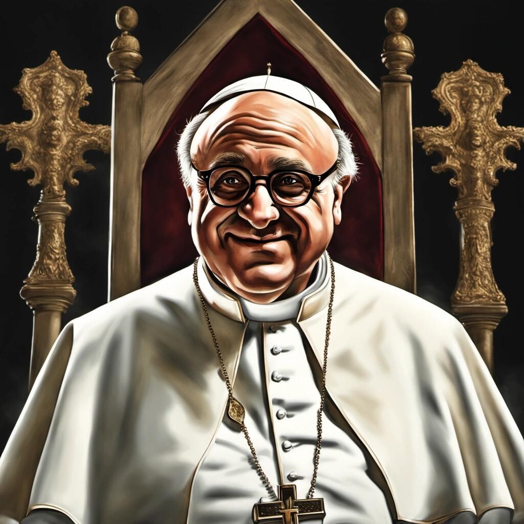 Prompt: Danny Devito as the Pope in the style of Thomas Kincade
