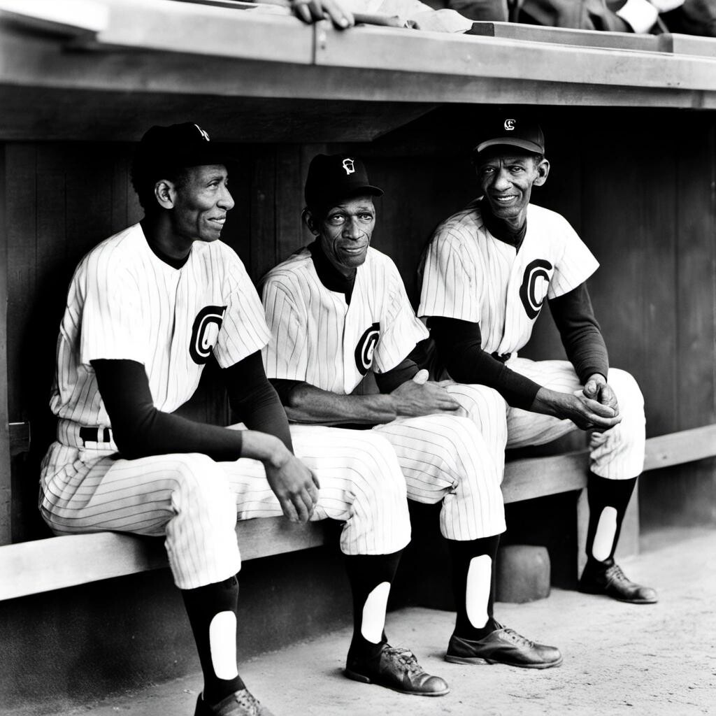 Prompt: President Abraham Lincoln in the dugout with Ernie Banks.