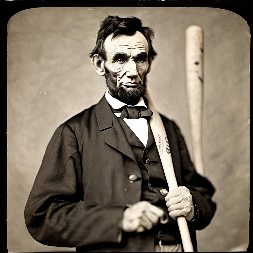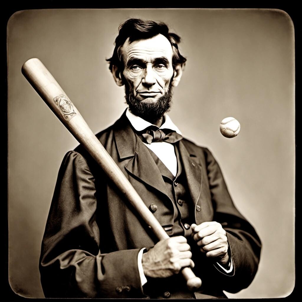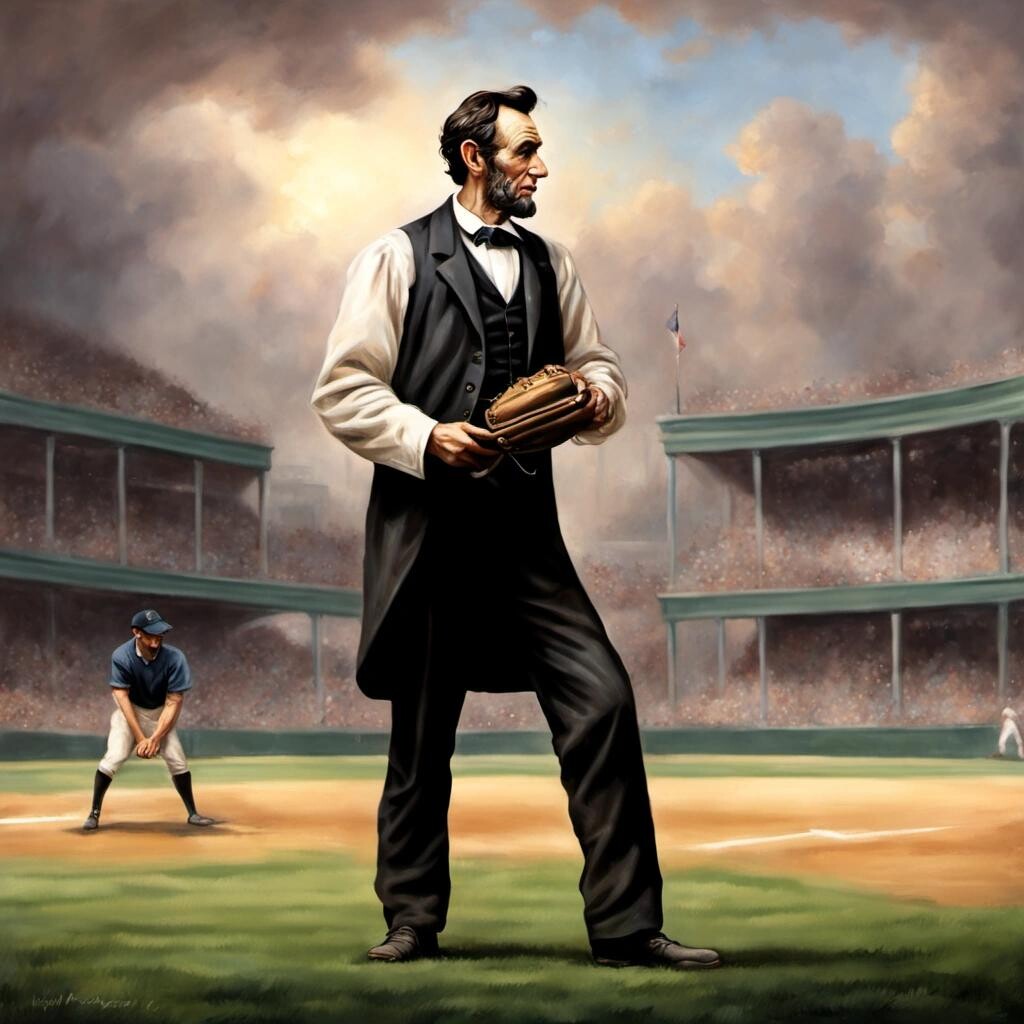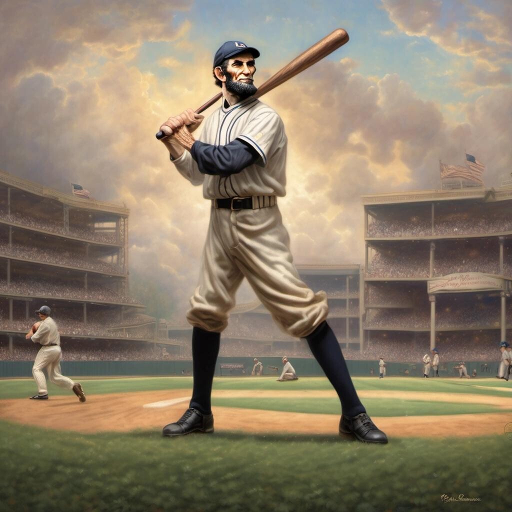 Prompt: Abraham Lincoln as a baseball player in the style of Thomas Kinkade.