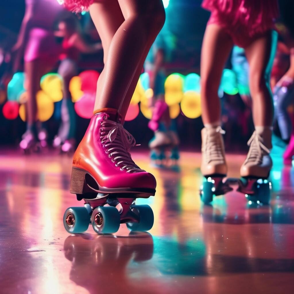 nostr:npub1p5qe4mtwxascahtp6szght2nlp06gwwwwllq7e7g6308p4y9dvys8nw2sf draw for me dreamlike beautiful colorful, hips swaying, curls bouncing, bubblegum popping at the roller disco, rollerskating, disco lighting, cinematic, 4k
