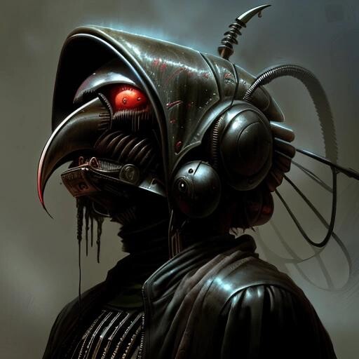 Prompt: a crow, horrific image, HR Giger nightmares,