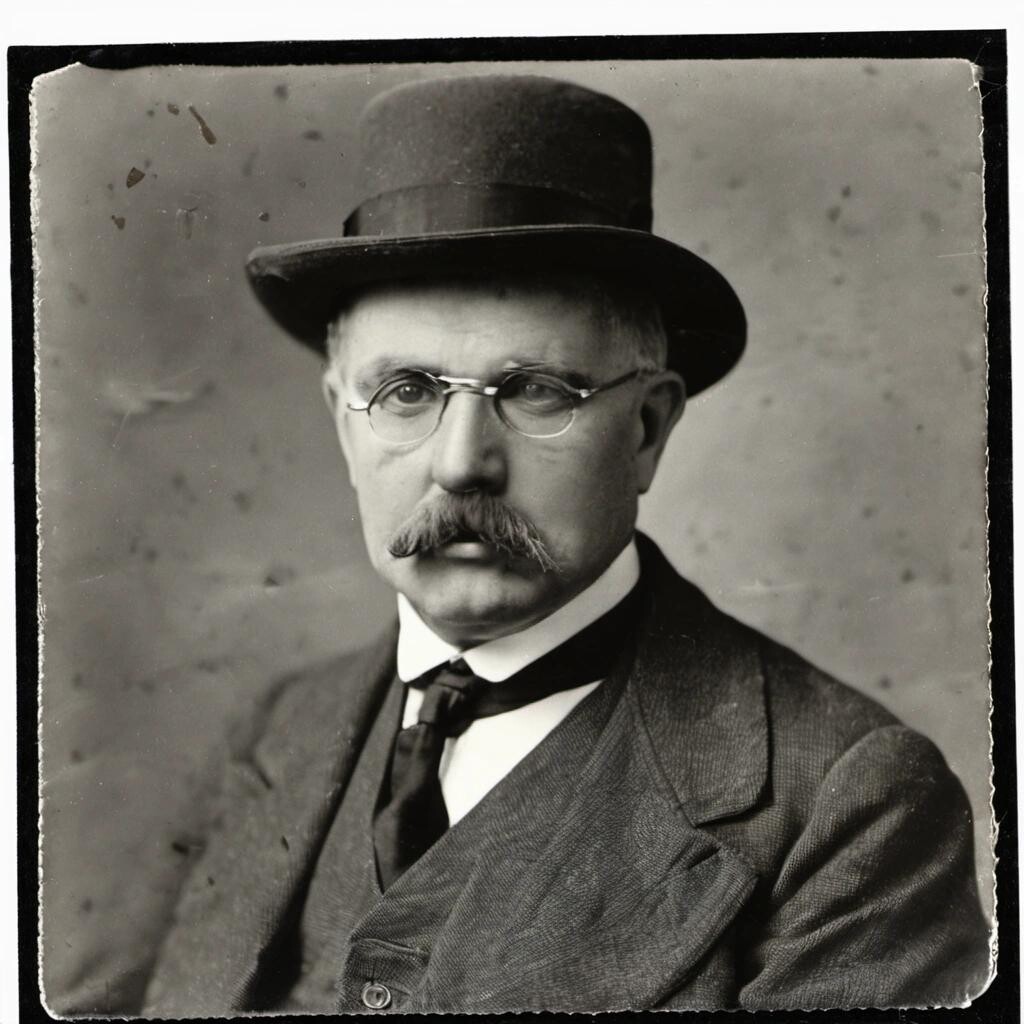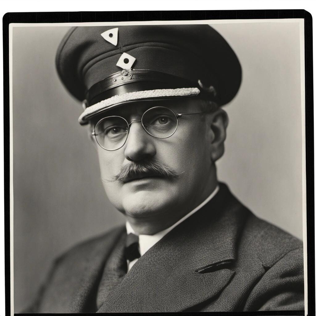 Prompt: An old black and white photograph of Karl Ranseier