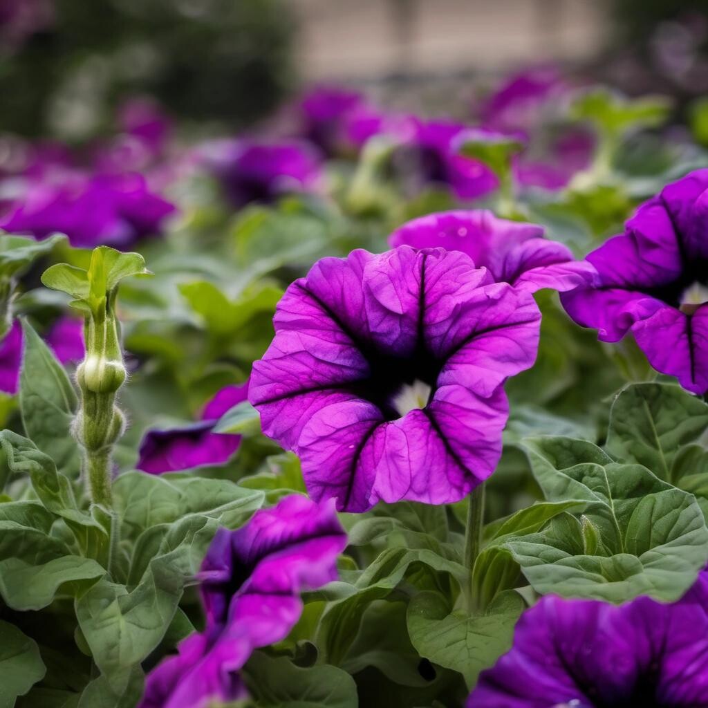 nostr:npub1p5qe4mtwxascahtp6szght2nlp06gwwwwllq7e7g6308p4y9dvys8nw2sf draw for me a pensive petunia in a garden