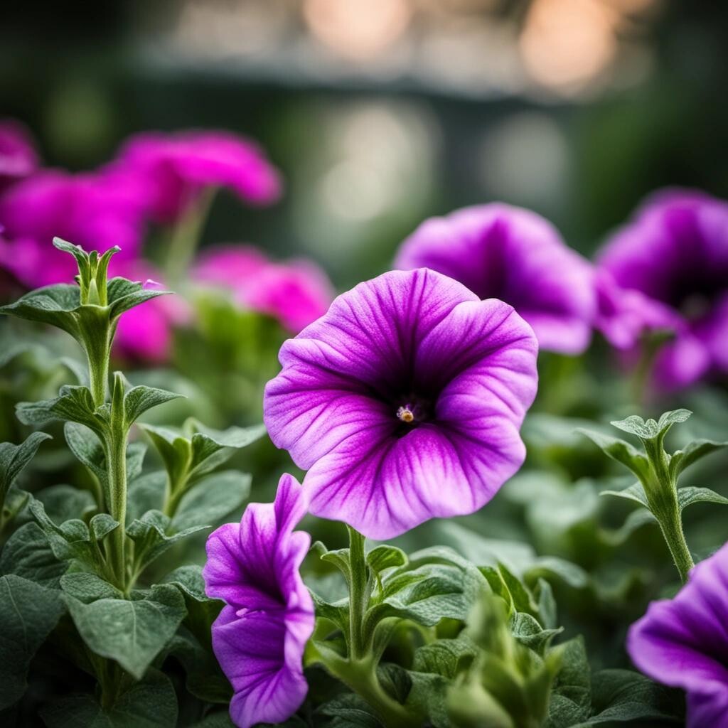 Prompt: a pensive petunia in a garden