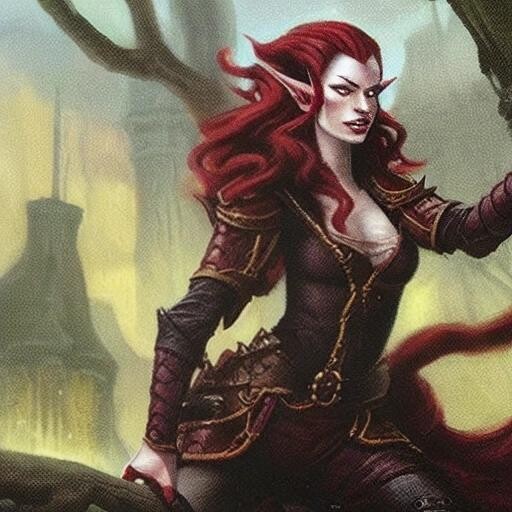 Prompt: a tall elf Corsair with deep red hair