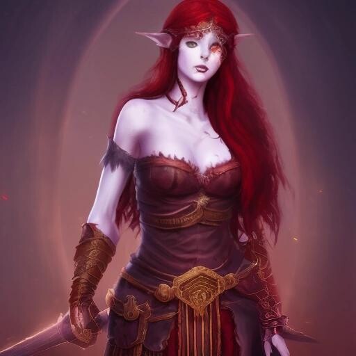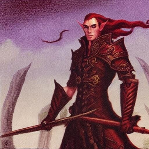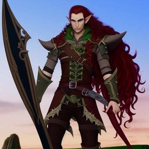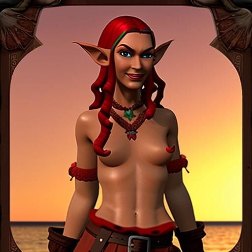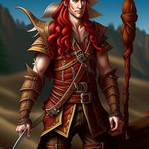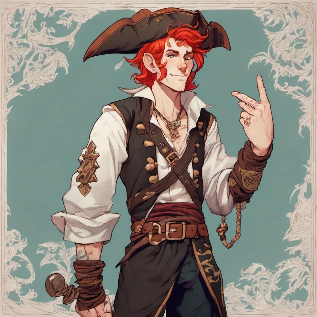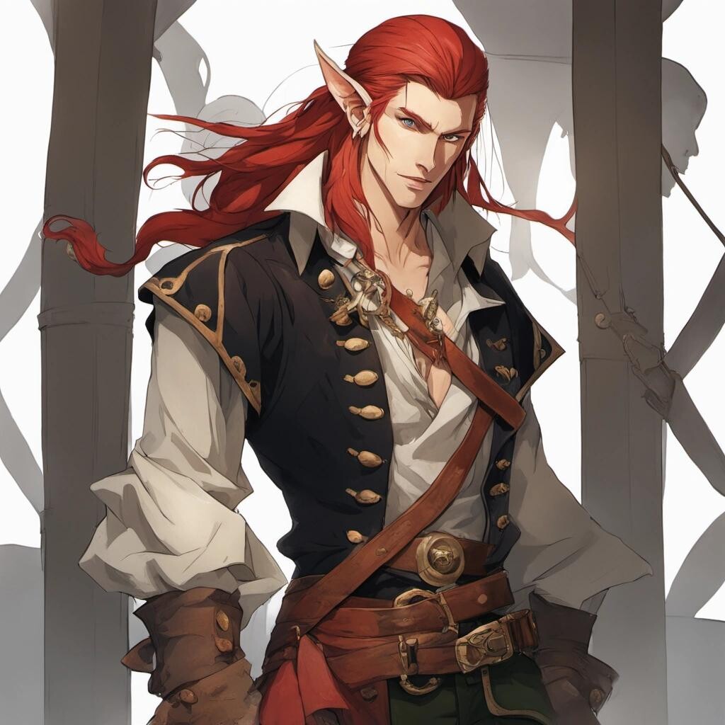 Prompt: a tall male elf with deep red hair, dressed as a pirate