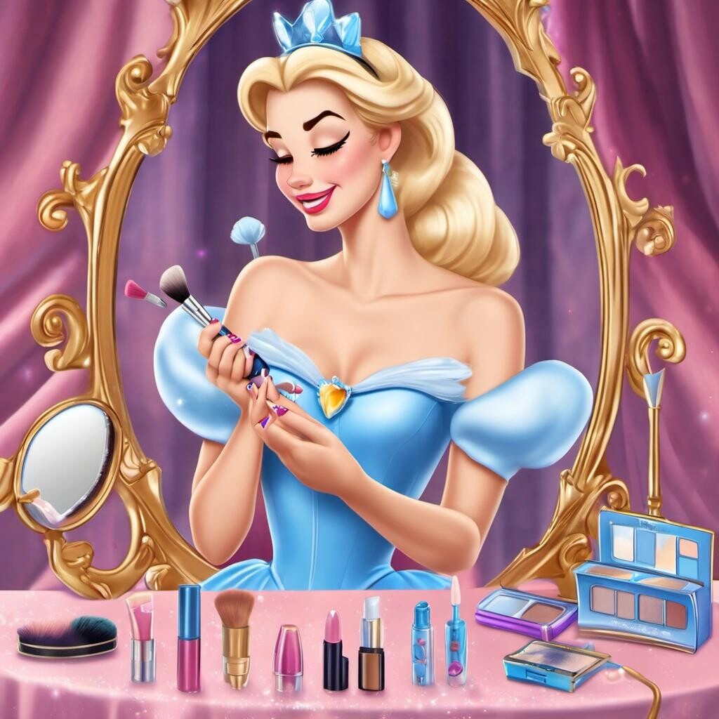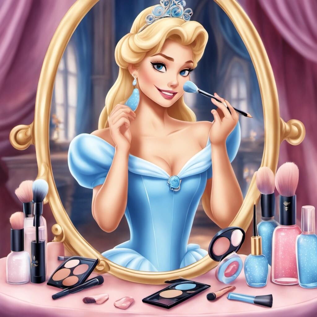 Prompt: Disney Cinderella doing her makeup as a beauty influencer