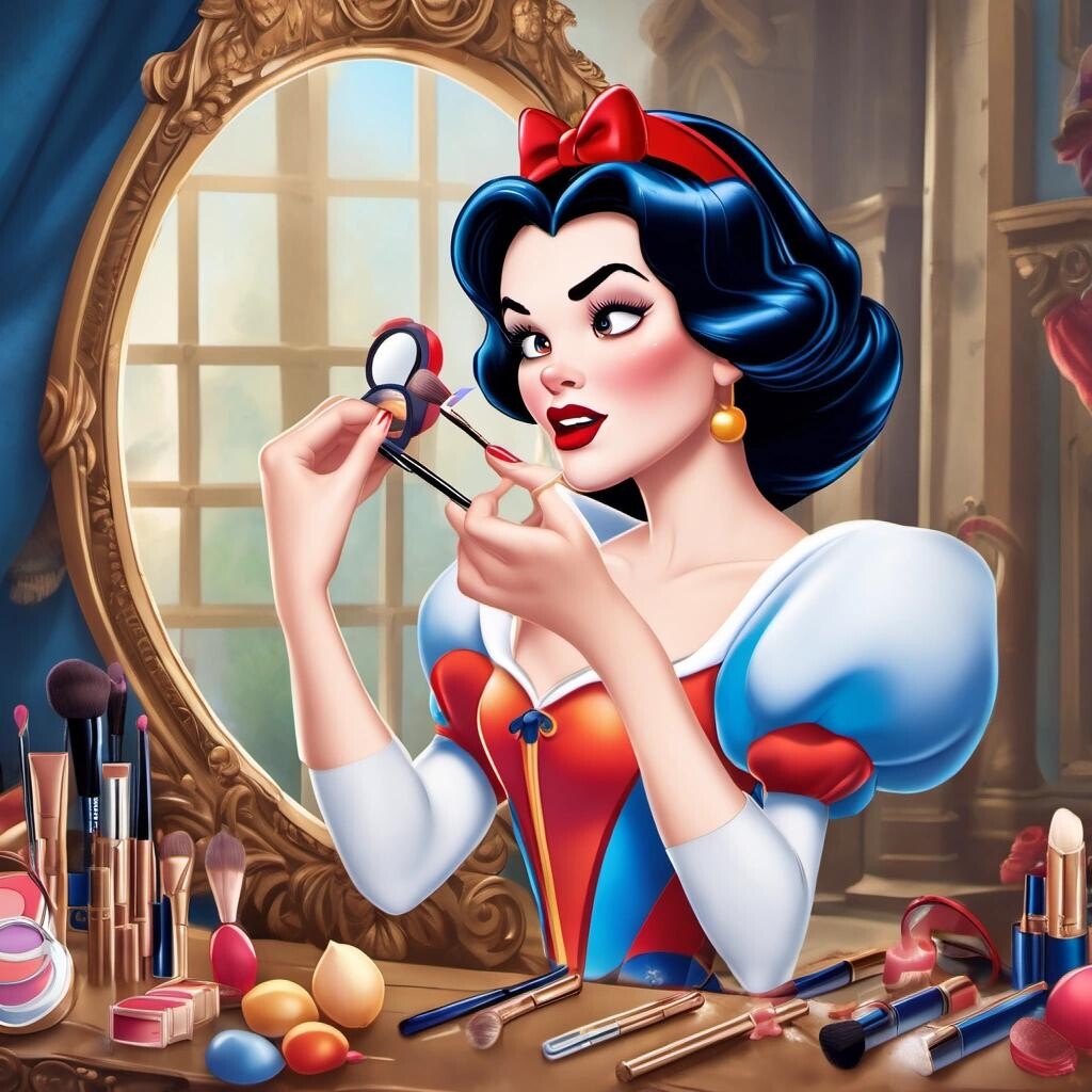 Prompt: Disney Snow White doing her makeup as a beauty influencer
