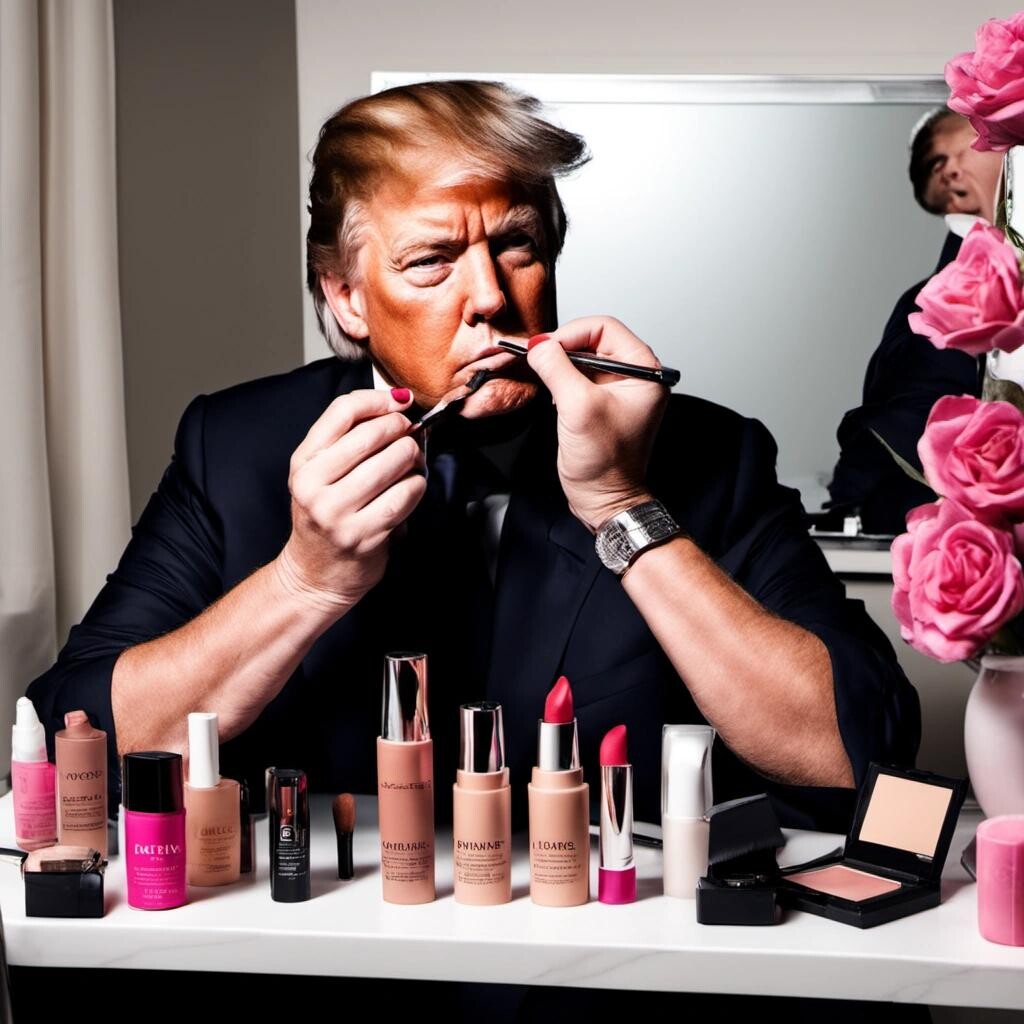 Prompt: Donald Trump doing his makeup as a beauty influencer