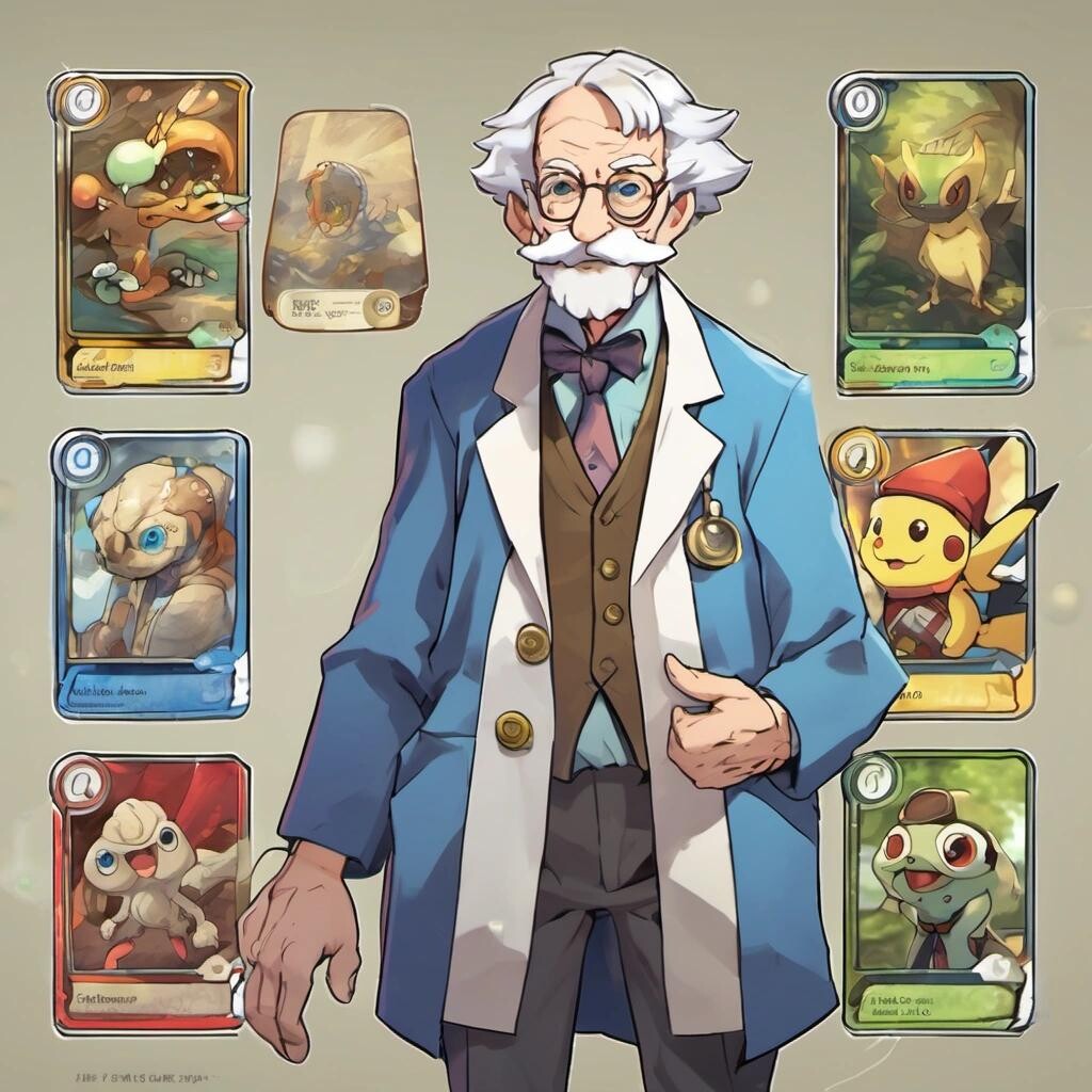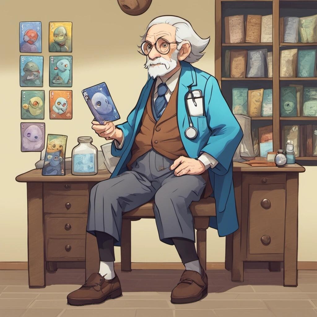 Prompt: a very old doctor wearing very short shorts in the style of a Pokémon card.