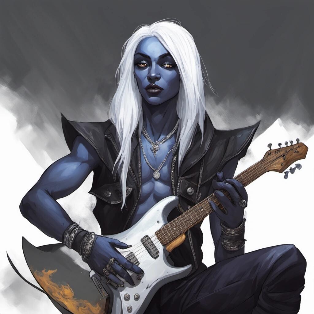 Prompt: a drow rockstar