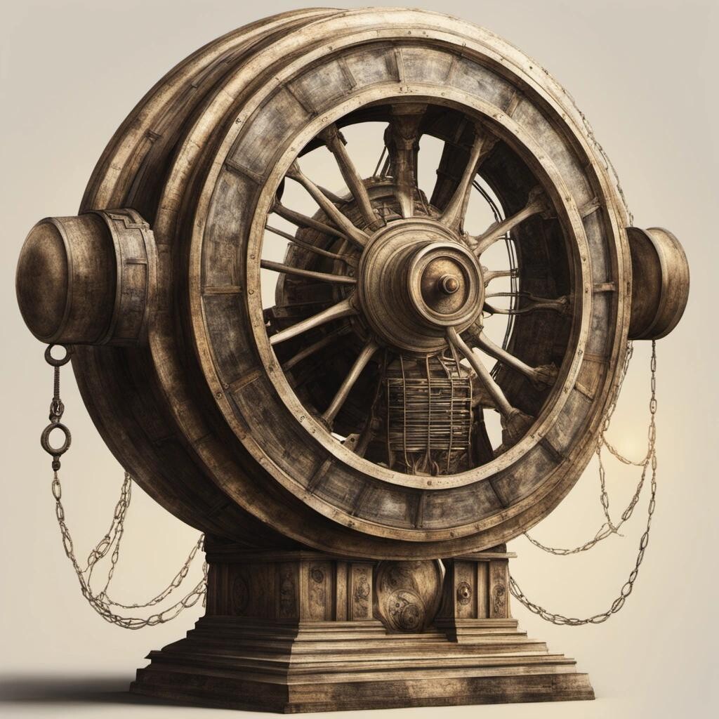 Prompt: an ancient time machine, unknown power source, greek philosopher, realism