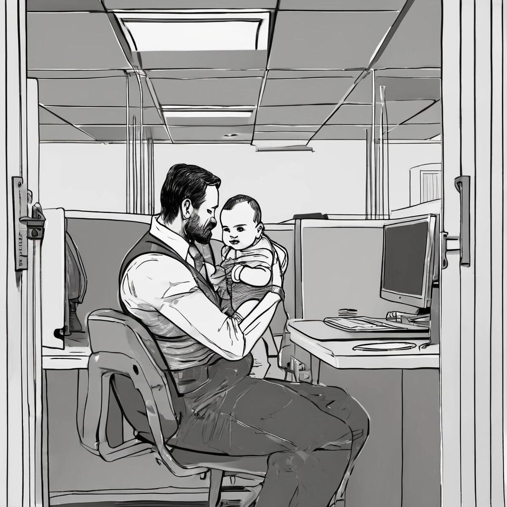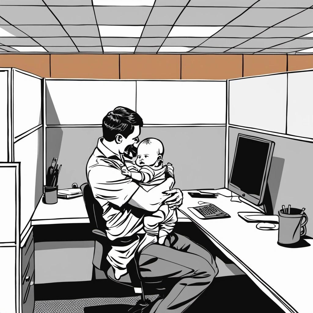 Prompt: a man-baby in a cubicle