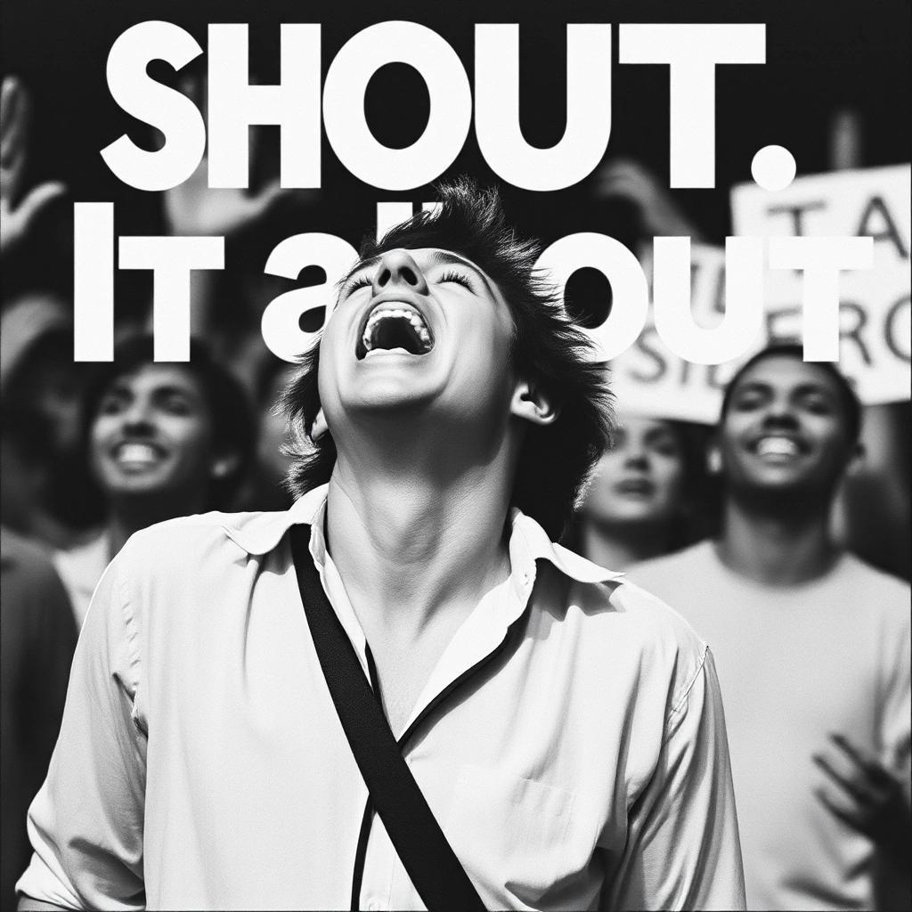 Prompt: Shout Shout Let it all out These are the things I can do without Come on I'm talking to you Come on In violent times You shouldn't have to sell your soul In black and white They really, really ought to know Those one track minds That took you for a working boy Kiss them goodbye You shouldn't have to jump for joy You shouldn't have to jump for joy