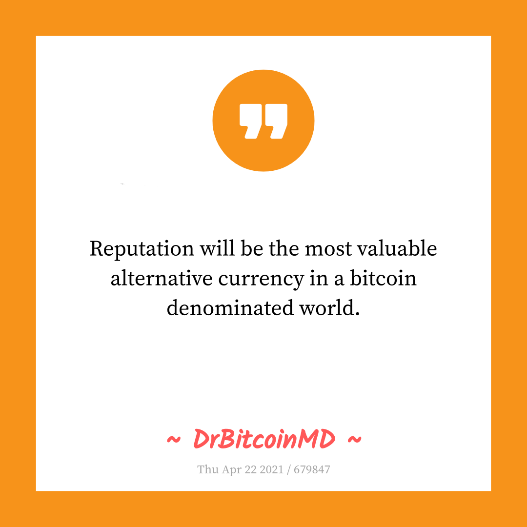 Reputation will be the most valuable alternative currency in a bitcoin denominated world.