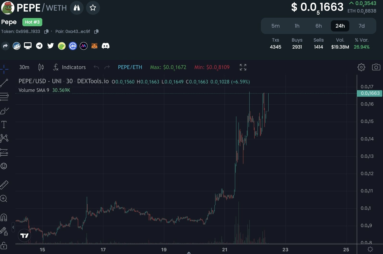 This morning, $PEPE, created on April 15th, rallied nearly 100% in a three day period.