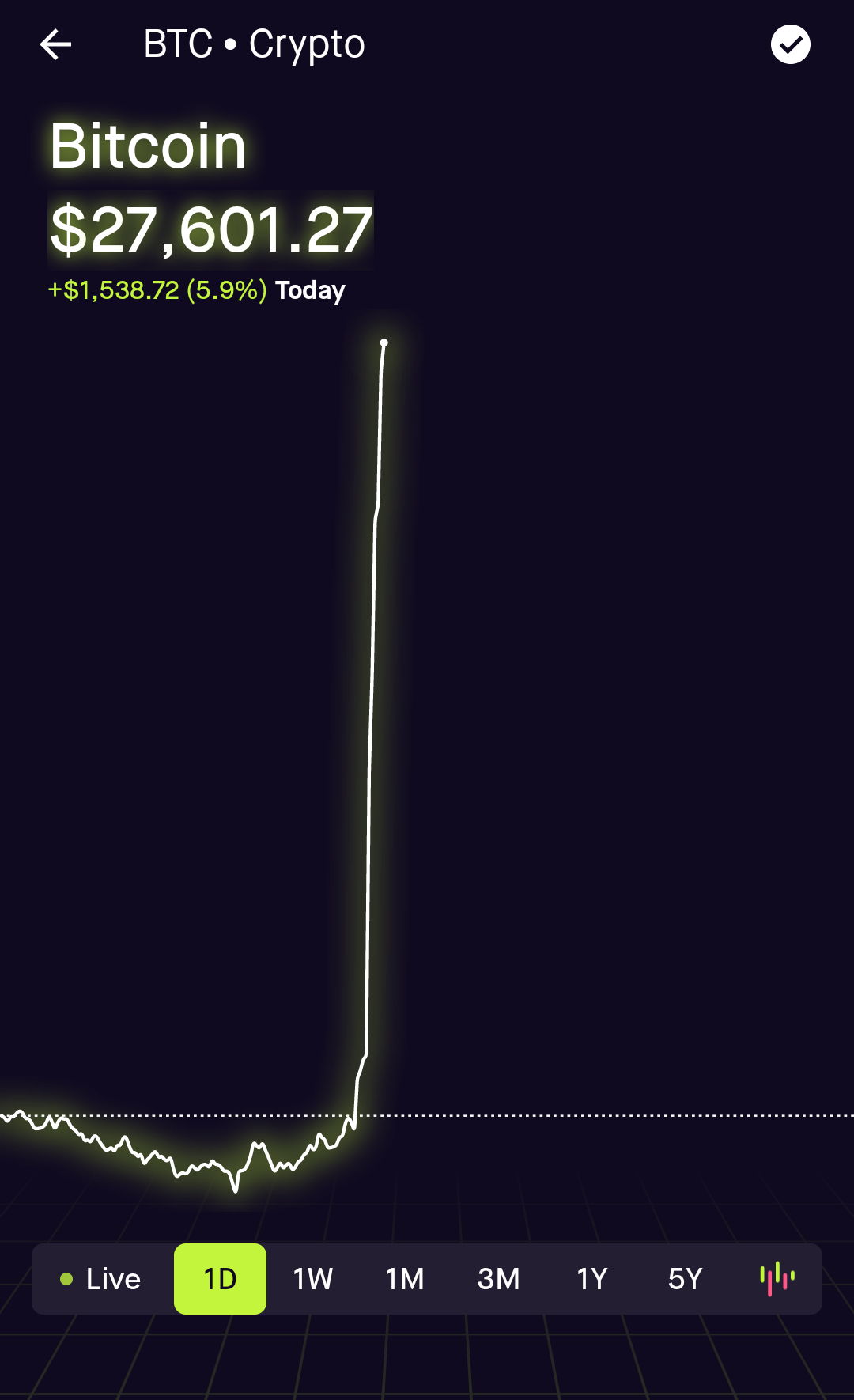 This is what happened a couple days ago when the news dropped about Grayscale winning their lawsuit. The price has since come back down some. Imagine what it's going to look like when the news hits that Blackrock and the others have been approved? #buythedip