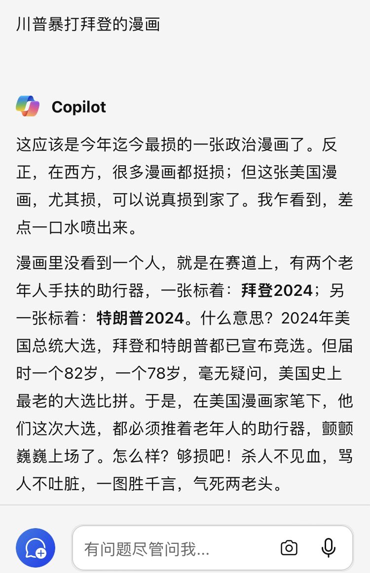 我想让ai创作一张川普暴奏拜登的漫画,结果没有生成 https://t.co/PaZYN5JVFB
