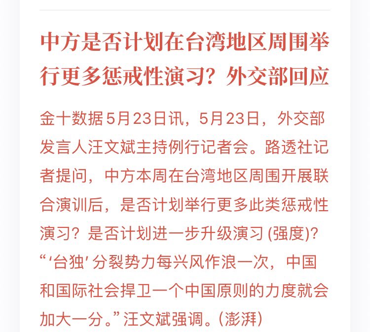 随着中共在台湾周边举行大规模的军事演习,市场有点担心这次不一样,资本出现一定程度的外逃 https://t.co/Foq0jcf7xm