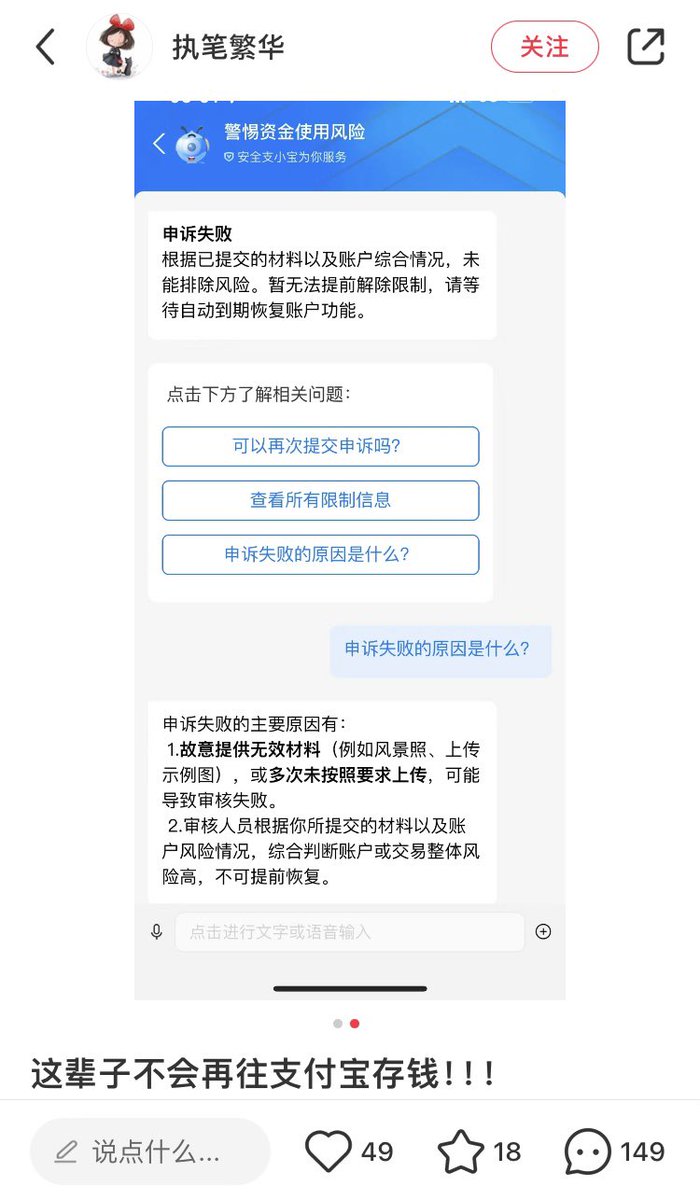 支付宝冻结网友账户,钱不给出 https://t.co/PRD7TdCqFP