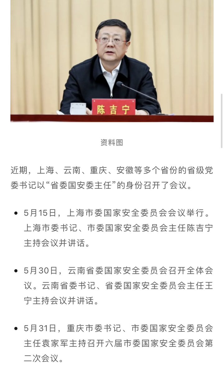 近期各省省委书记都以“省委国安主任”身份召开会议!