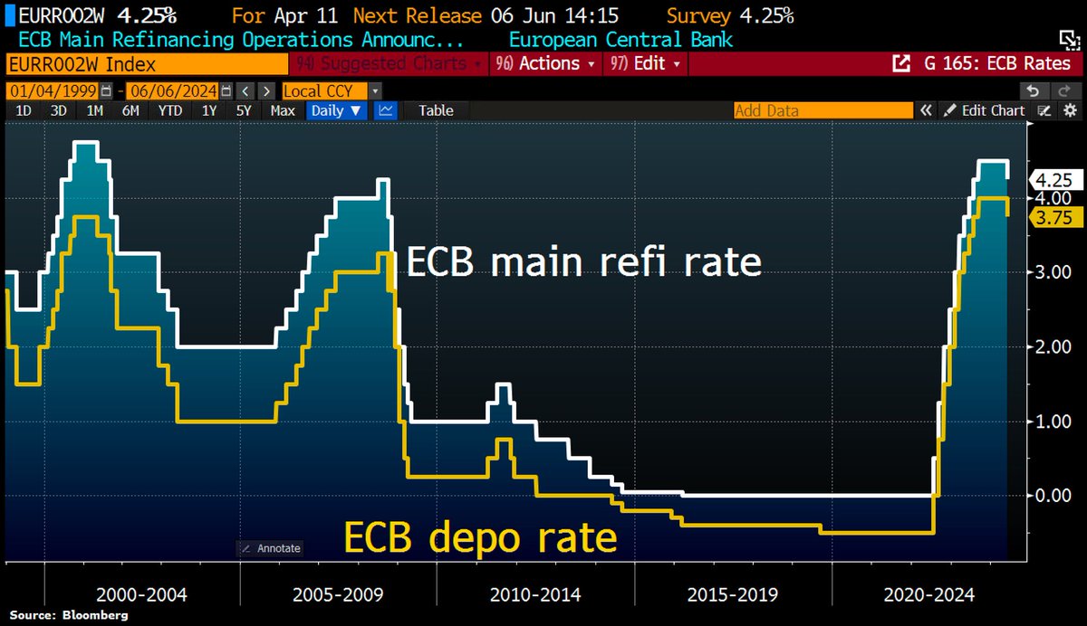 欧洲央行如期降息25个基点,但是由于通胀预期反弹,市场对未来欧元继续降息表示担忧,所以欧元公布后走强 https://t.co/68jbv0tS8e