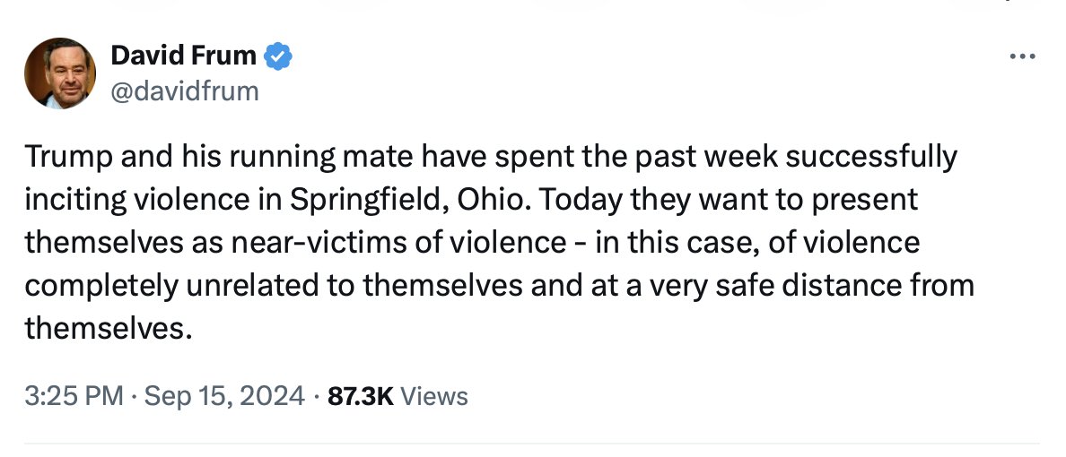 Shortly after a leftist freak tried to assassinate my dad, @davidfrum of @TheAtlantic tweeted the below. Truly deranged that after two verified assassination attempts, this sicko responds by claiming, without any evidence, that he is actually the one guilty of inciting violence! https://t.co/mFeEDmu3Yz
