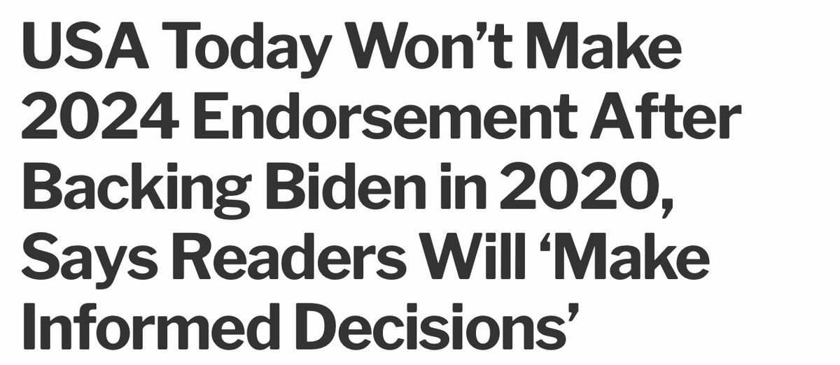 USA Today Endorsed Joe Biden in 2020 but will not endorse Kamala Harris 👀 https://t.co/CLF0c4bRKn