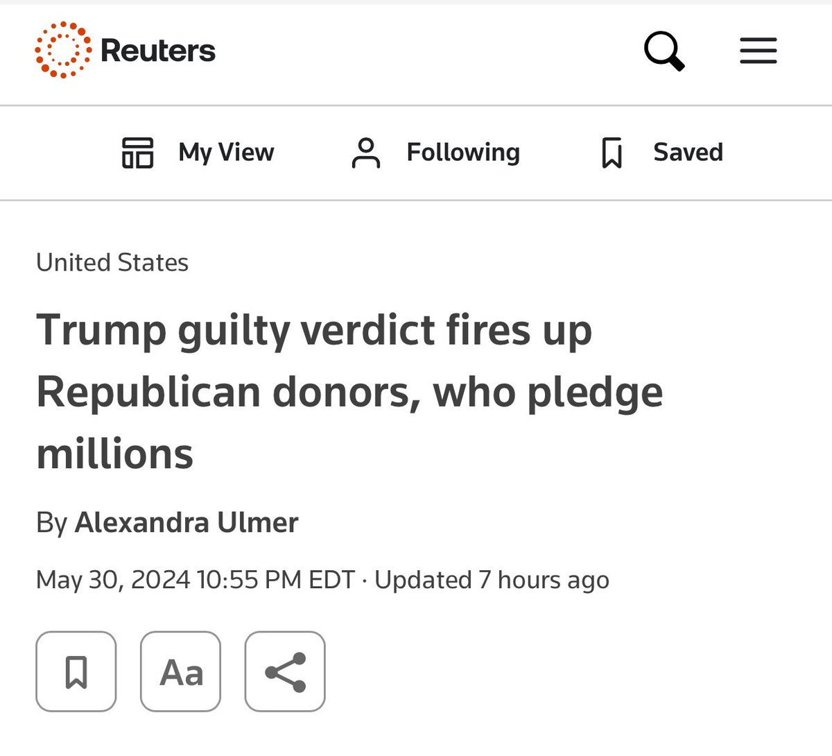 🚨TRUMP SHATTERS FUNDRAISING RECORDS AFTER RIGGED BIDEN TRIAL VERDICT