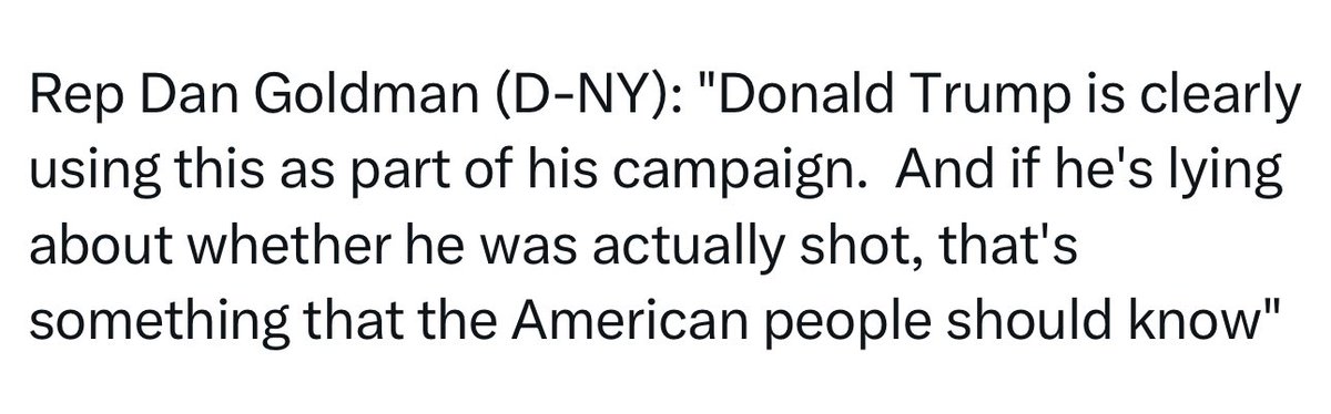 Top Harris-Biden ally in congress, @RepDanGoldman, just this morning tried to spread a conspiracy theory suggesting Trump wasn’t actually shot.