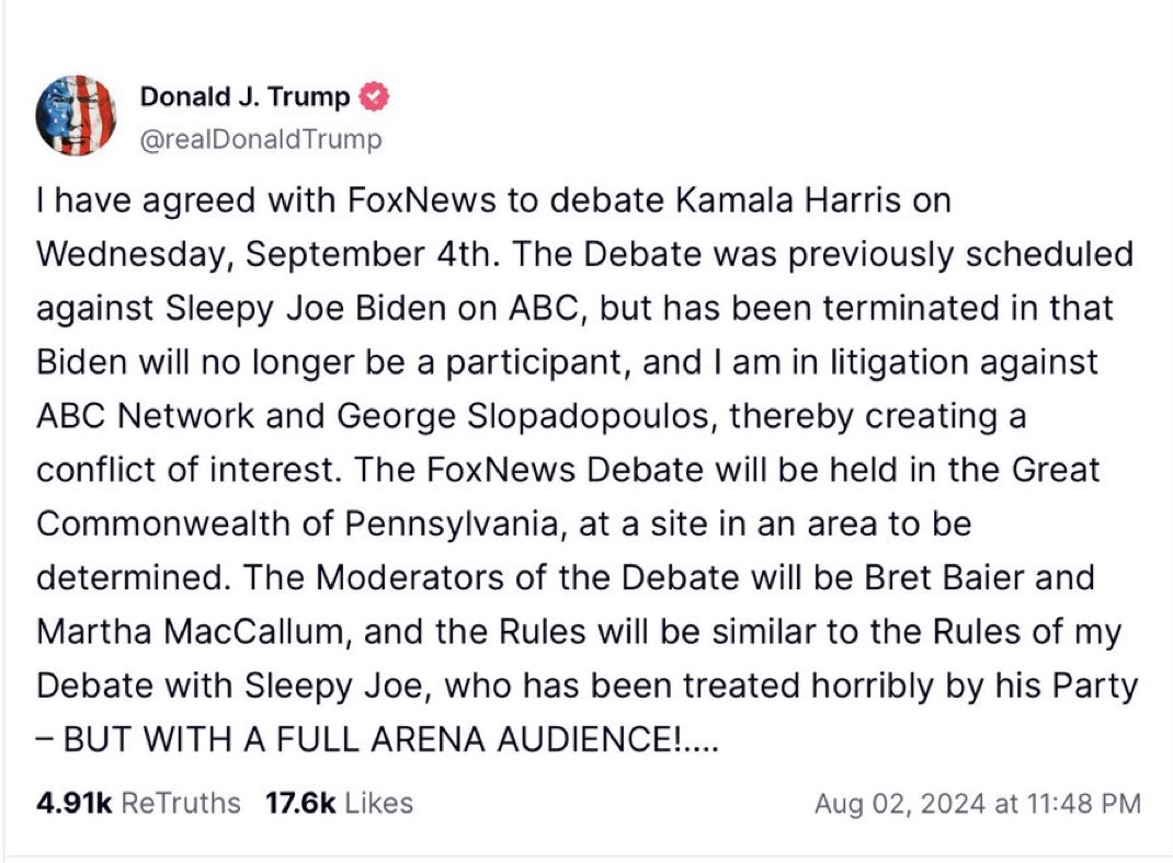 Kamala Harris will only debate if she gets to handpick the moderators because she knows she canโt win in a fair fight!