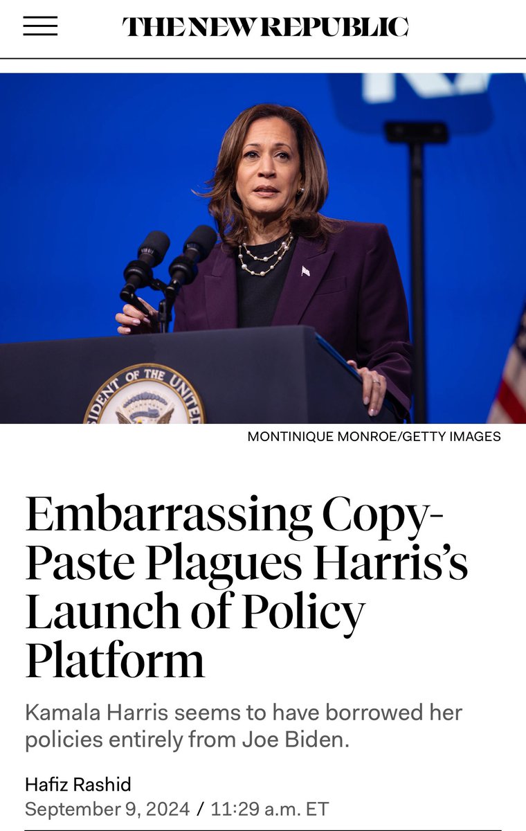 “Kamala Harris seems to have borrowed her policies entirely from Joe Biden."