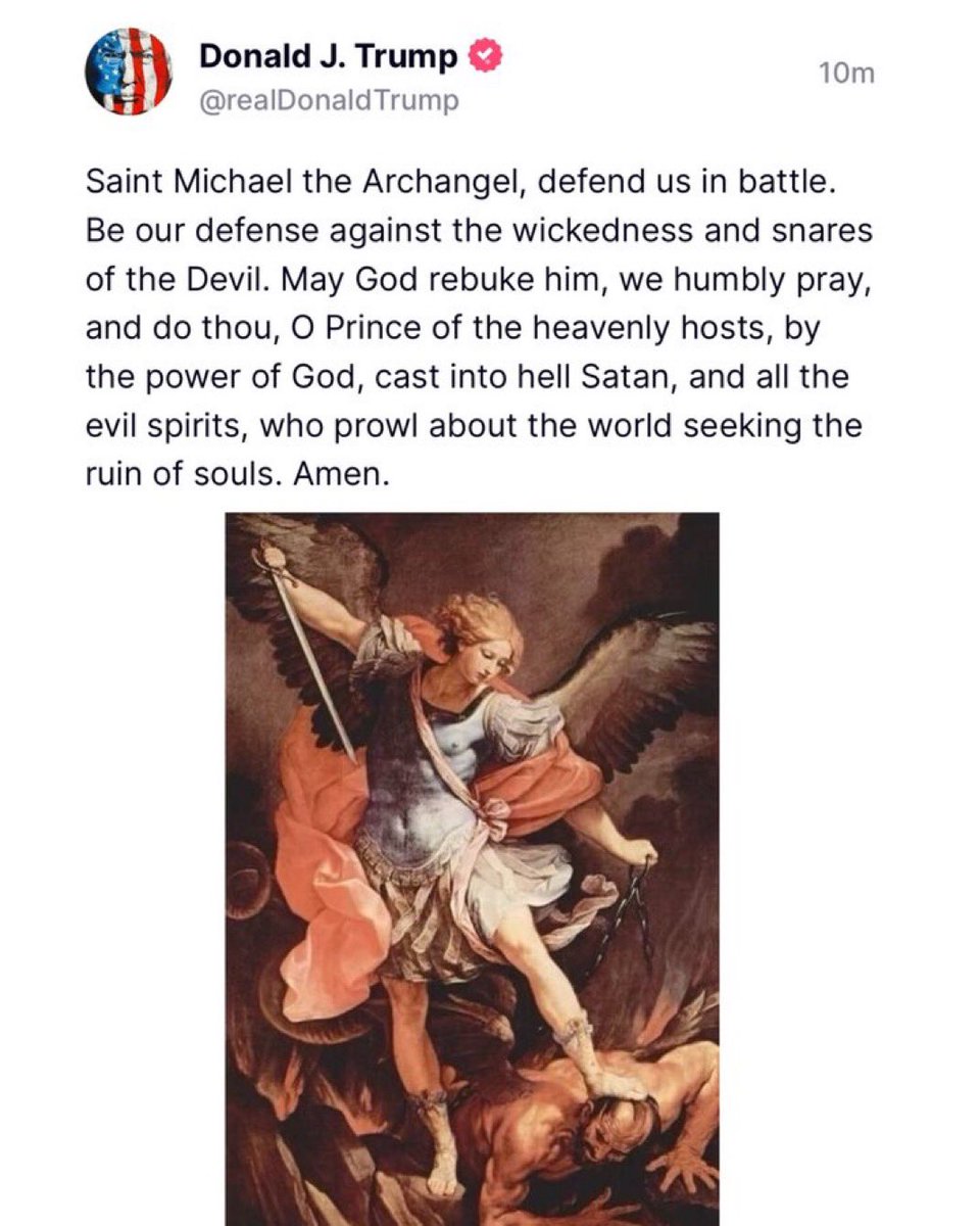 President Trump just posted the prayer to St. Michael.