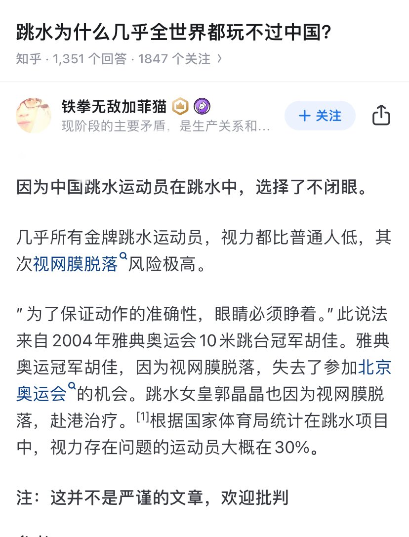 🇨🇳跳水队强势因为选择不闭眼姿势入水,这是真的吗?