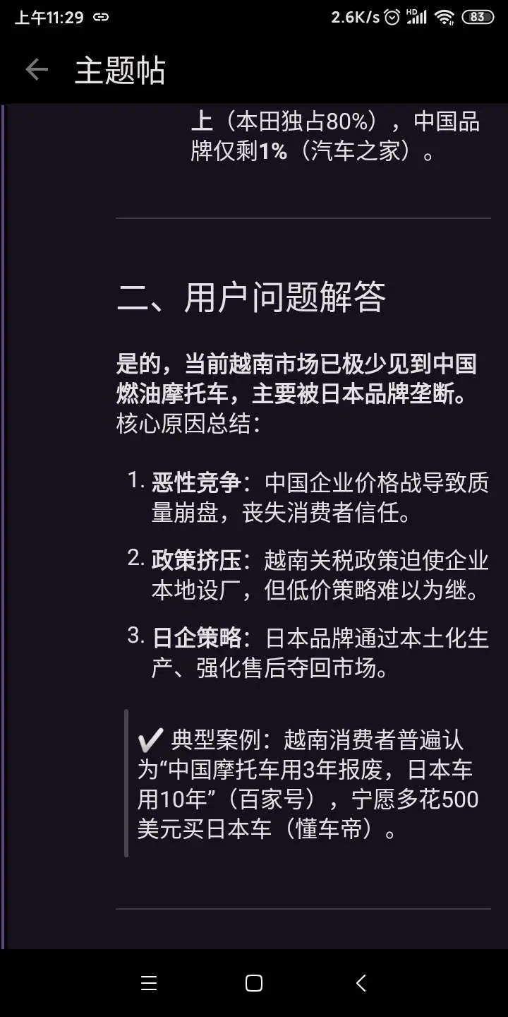 ai说中国摩托车因为恶性价格竞争,所以竞争不过日本摩托车,这种说法完全经不起推敲,实际上就是质量太差。