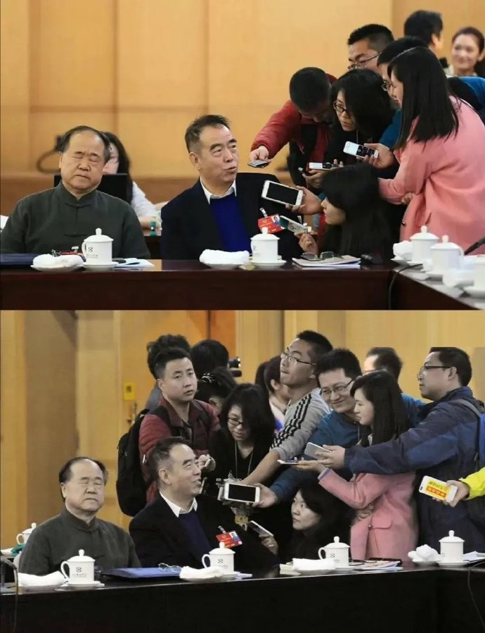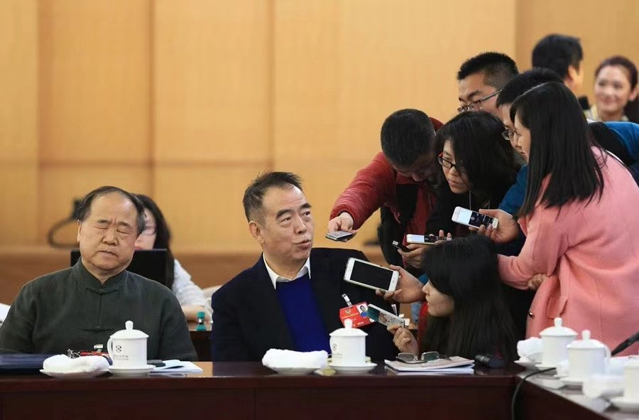 2016 年两会上,莫言与陈凯歌。 https://t.co/qZOqxpWfoL