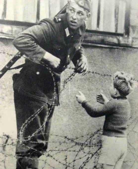 1961 年柏林墙竖起的那天,一名年轻的东德士兵违抗政府禁止任何人进入东柏林的命令。
