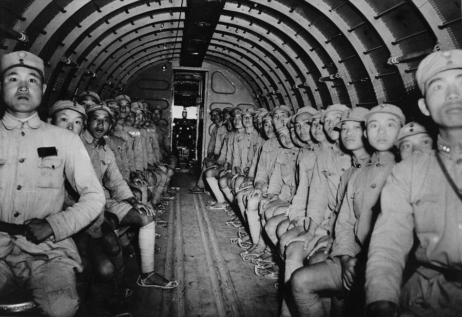 1943 年,中国士兵乘坐 DC3 飞机飞越喜马拉雅山,前往印度的美国拉姆加尔训练中心,他们穿着草鞋,后来奔赴缅甸与日军作战,大部分都战死沙场。 https://t.co/VF6CPn4e2F