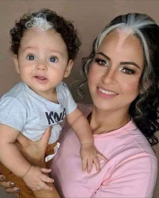 母亲和孩子患有白发症,头发上有遗传性白带。 https://t.co/OJ2jwaPJNC