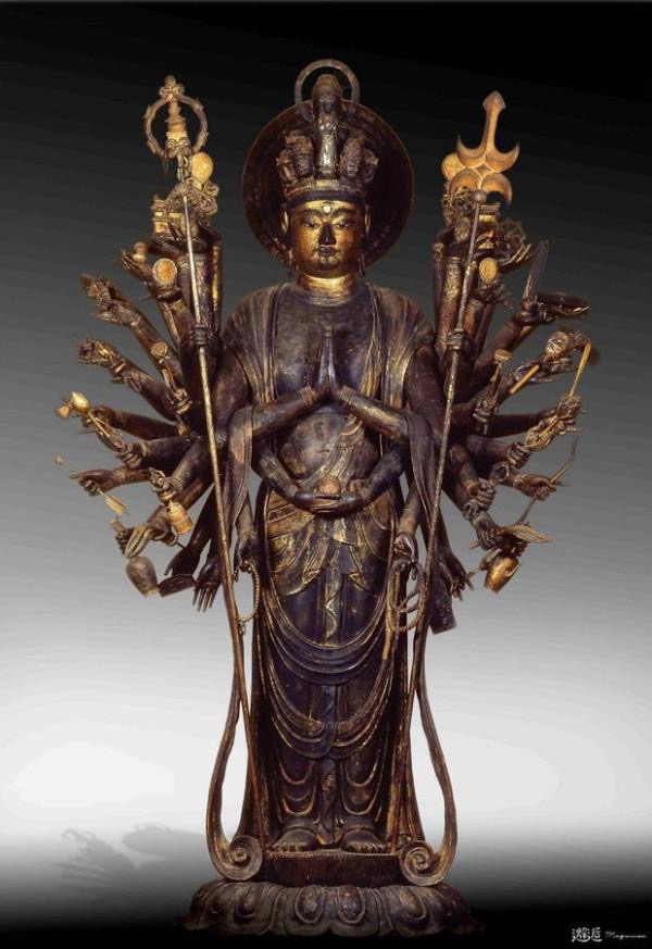 雕像高 291 厘米,与日光、月光菩萨像等侧武士像一起被指定为国宝。许多千手观世音菩萨都有 42 只手,但这位千手观音多了 2 只,有 44 只手。 https://t.co/9siXXHVdt9