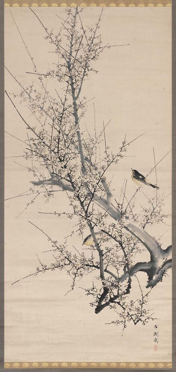 日本工笔画,梅花与莺莺,西山法圆 (Nishiyama Hôen) 著,19 世纪中期。