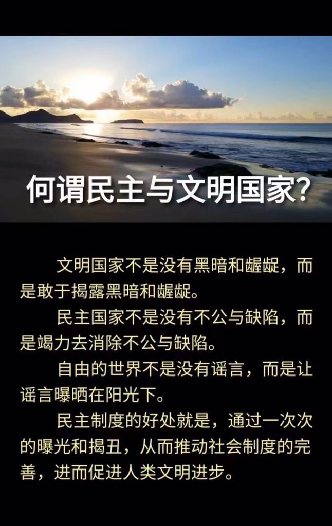 当中国变成民主文明国家,我依旧可对她挑三拣四,因为我对中国的“民主文明”付出过实际行动与代价。而不是随波逐流,当沉默的哑巴。