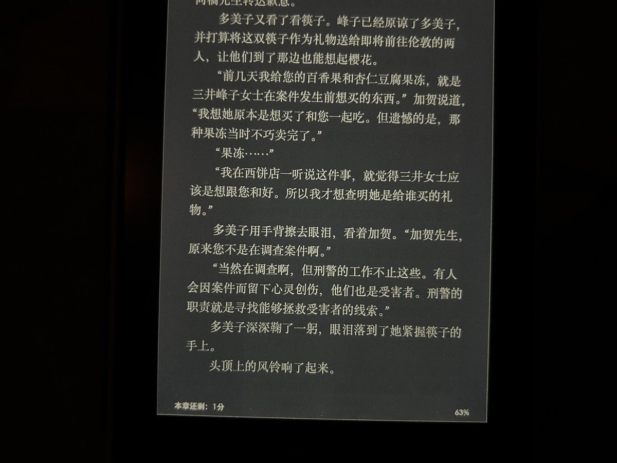 东野圭吾《新参者》。读完了他的好几部小说,我最喜欢《白夜行》。日本快早上五点了,我几乎整夜没睡,睡前不该喝绿茶🍵!🤥 https://t.co/ieBYnTv7x9