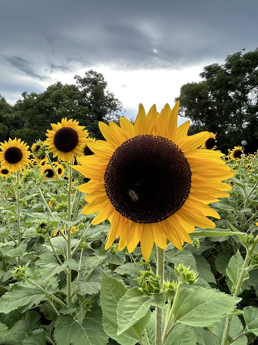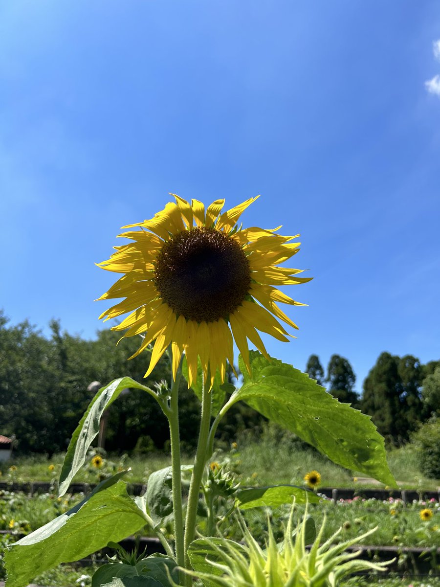 ひまわりを見ています。公園にはたくさんありますよ。😊すごいきれい!(又碰到那个可爱的日本老头儿,他说孩子长大了许多,樱花盛开时常遇到他😆) https://t.co/jqTmzGsLhi