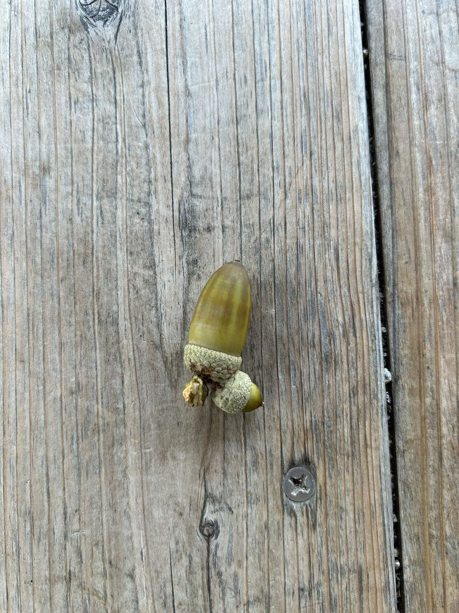 时间过得真快呀。去年秋天,和虎ちゃん一起拾橡果,转眼间,树下又落满了新果子。