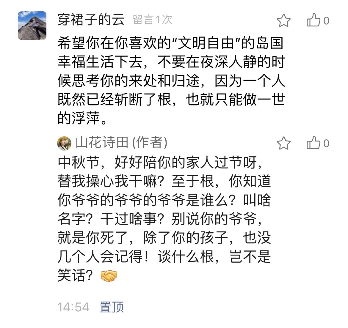 说实话,我对那个人真没有嘲笑。他的留言,我虽有一点不适,但感觉人又不坏,并没针对我,甚至还夸了我。😊
